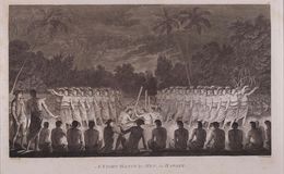 “A Night Dance by Men, in Hapaee” from the atlas of the official publication of the journal of Captain Cook’s 3rd and last voyage of exploration entitled; “A Voyage to the Pacific Ocean. Undertaken, by the Command of his Majesty, for making Discoveries in the Northern Hemisphere. To determine The Position and Extent of the West Side of North America; its Distance from Asia; and the Practicability of a Northern Passage to Europe. Performed under the direction of Captains Cook, Clerke, and Gore, In His Majesty's Ships the Resolution and Discovery. In the Years 1776, 1777, 1778, 1779, and 1780. In Three Volumes. Vol. I and II written by James Cook, F.R.S. Vol. III by Captain James King, LL.D. and F.R.S.”