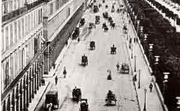 Rue de Rivoli at the time of the Pairs Exposition Universelle which ran from May to November of 1855. This street was the first project under Haussmann after appointed Prefect of the Seine by Emperor Napoleon III. With sweeping powers to implement construction plans, and only reporting directly to Napeleon himself, Haussmann was able to fund, demolish 800 houses and rebuild this major two mile artery running east-west across the capital city in a short amount of time at an estimated cost of 120 million francs. Photograph by Adolphe Braun (1811-1877).